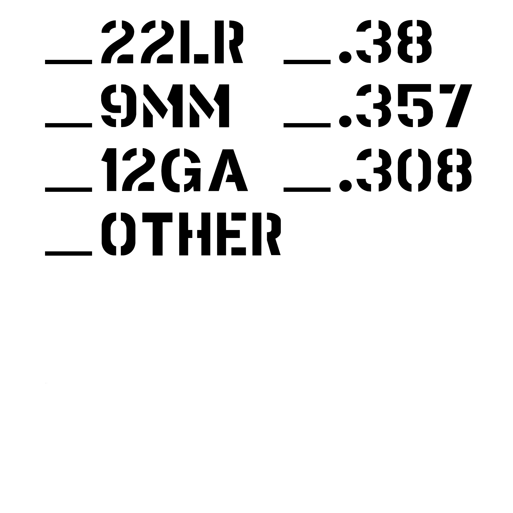 A stencil is a simple, permanent ammo can labeling solution - and it looks better than other solutions (in my humble opinion). One stencil can list all the calibers in your inventory, so the same stencil can be used on all your ammo cans. Simply make a mark in the stencil area next to the caliber(s) stored in the can. You can store multiple calibers in the same can without having to use multiple stickers or labels. A Sharpie marker can be used for marking the stencil, and the marks can be easily removed with rubbing alcohol as your ammo inventory changes.