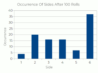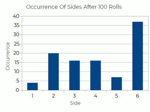 Figure 3 shows the occurrence of each side after 100 rolls.
